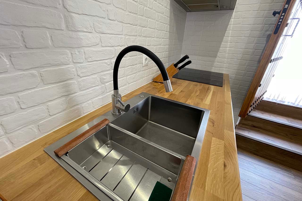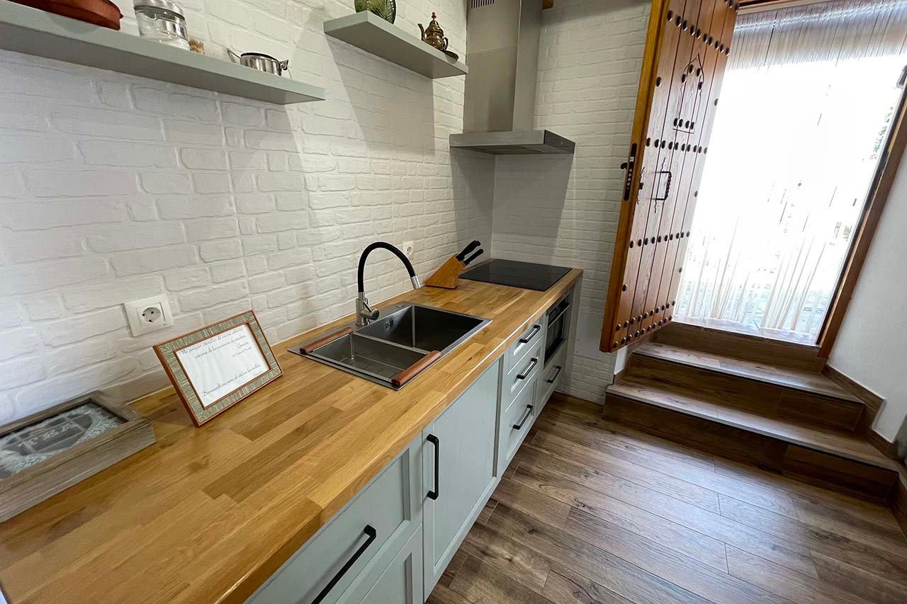 Los 4 espacios que forman la casa están en una misma planta: cocina/comedor, balcón, habitación y lavabo. Cuenta con posibilidad de un sofá cama para un niño