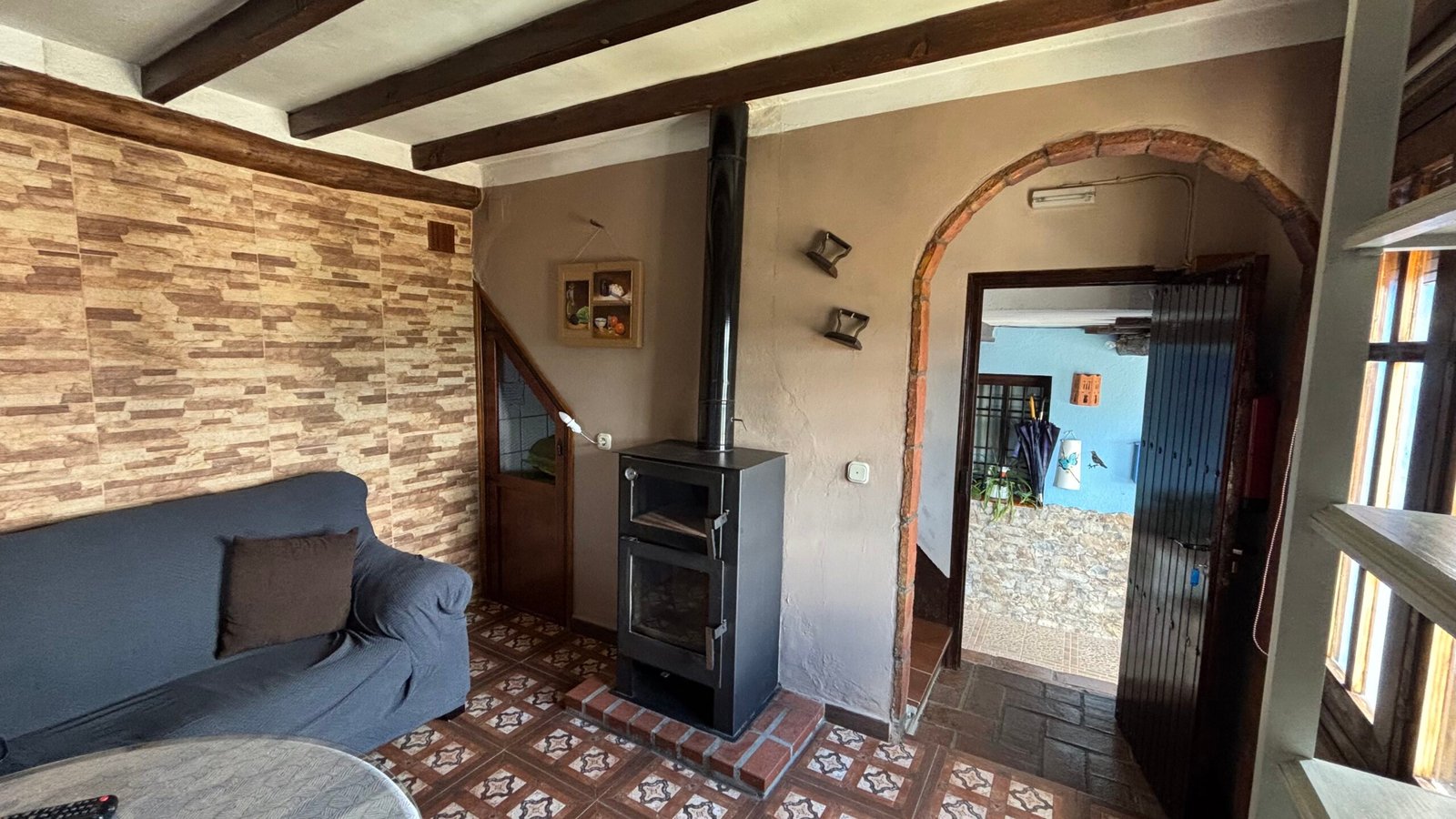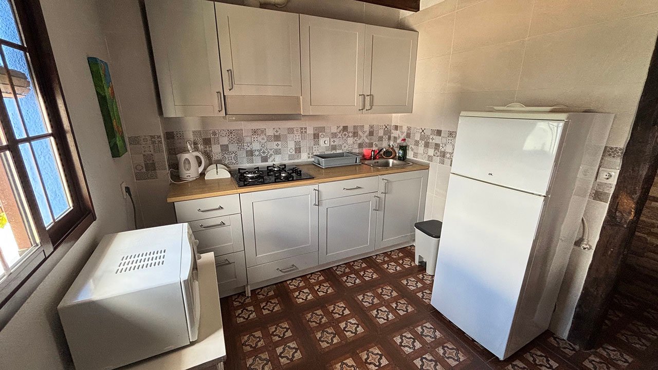En la planta baja: salón-cocina con chimenea y un aseo. En la primera planta: una habitación con cama de matrimonio y un cuarto de baño. La casa cuenta con una amplia terraza.