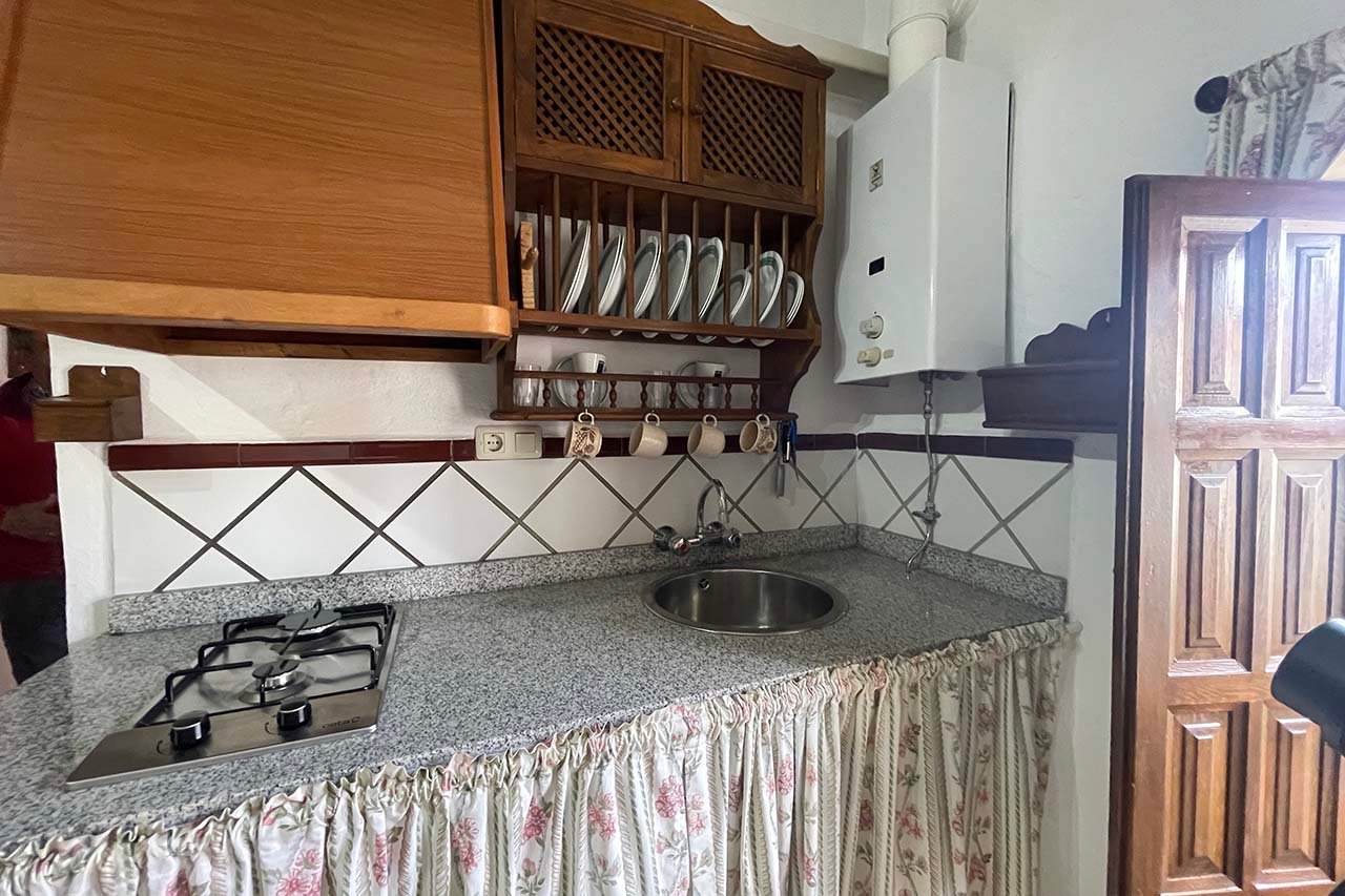 Casa de una sola planta. Cuenta con Salón-cocina, un dormitorio con cama de matrimonio y un cuarto de baño con placa ducha.