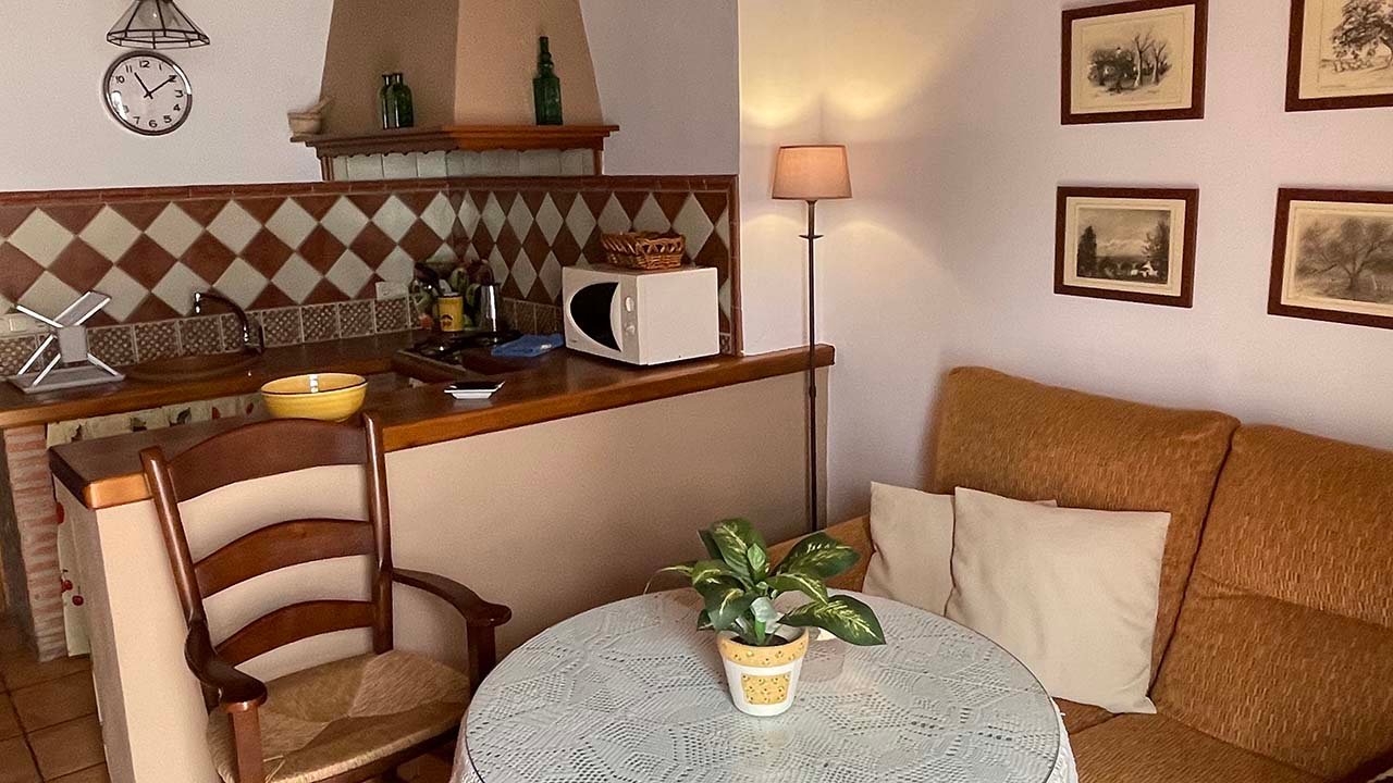 La casa consta de una sola planta distribuida de la siguiente manera: Salón–cocina, un dormitorio con cama de matrimonio, un baño con ducha. La casa cuenta con mucha iluminación.