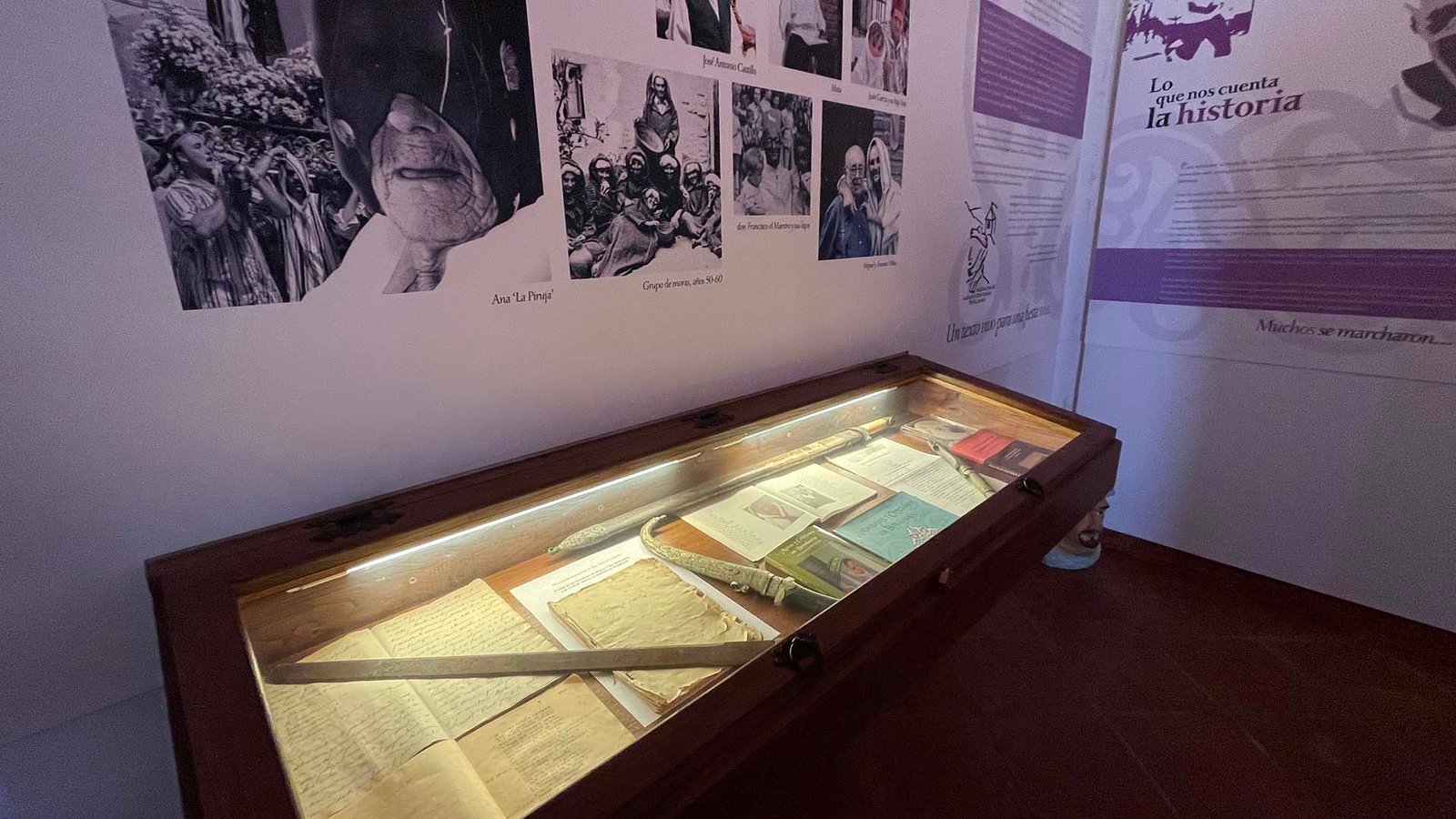 El local es un cuadrado que tiene 8 arcos y una columna en el centro. En uno de los arcos está la entrada y en los otros siete está la exposición.