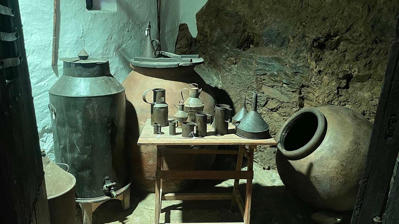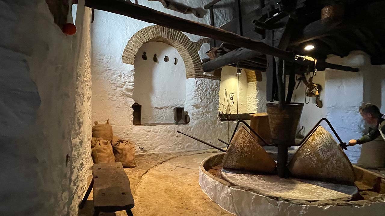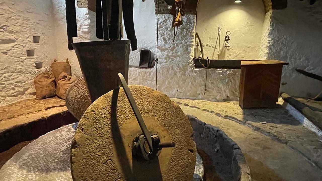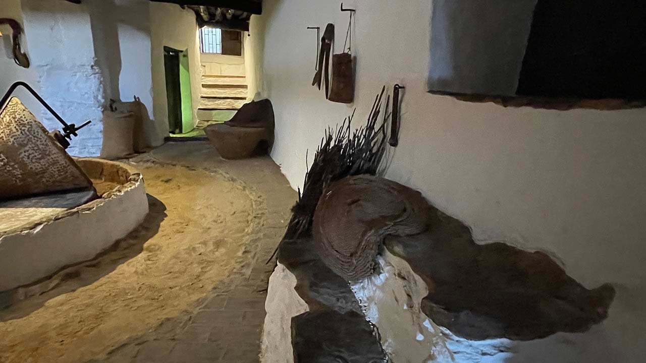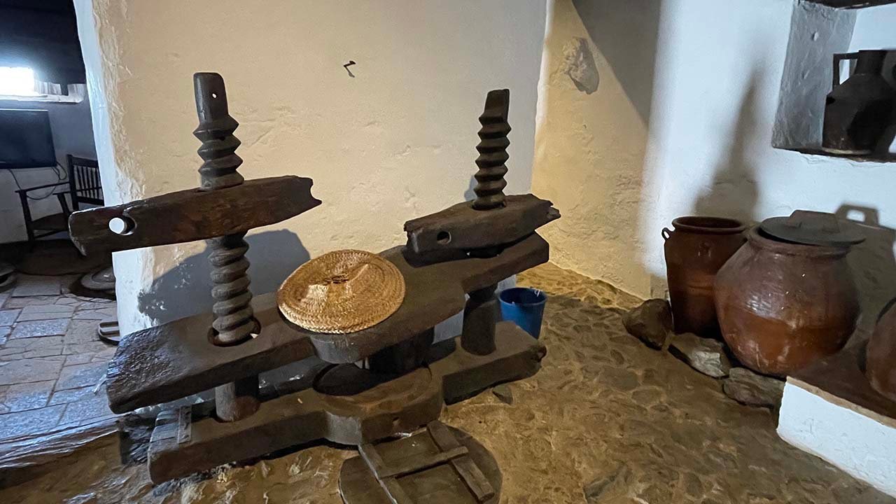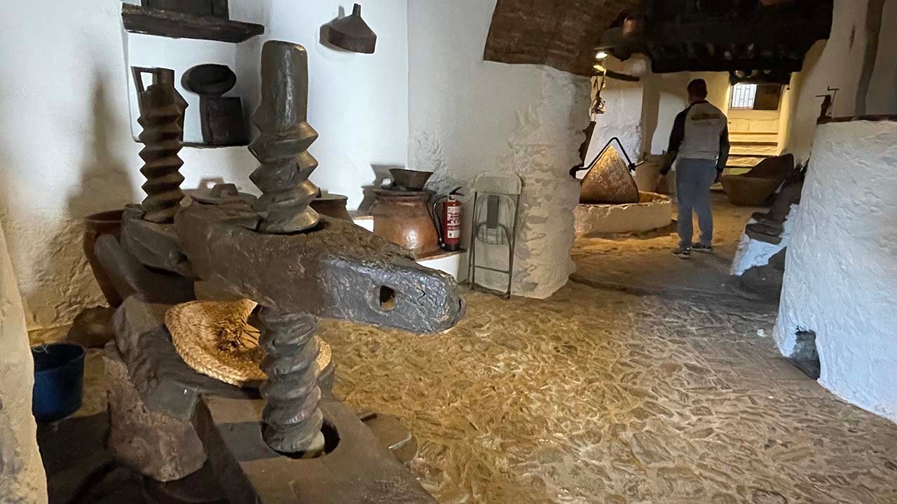 Te hablo del Museo Etnográfico, cuyos orígenes más remotos se remontan al siglo XVIII, a un molino, el de Antonio Almagro,  El más completo de los existentes en nuestro territorio, este molino de mampostería alberga en su interior una de nuestras grandes joyas, una almazara de sangre y unos lagares con todos los útiles necesarios para su funcionamiento. Aperos de labranza, pesas y medidas integradas con los objetos que definirían la oficina de organización del molino y útiles relacionados con la producción agrícola, entre otros elementos, conforman este apasionante viaje a nuestras raíces.